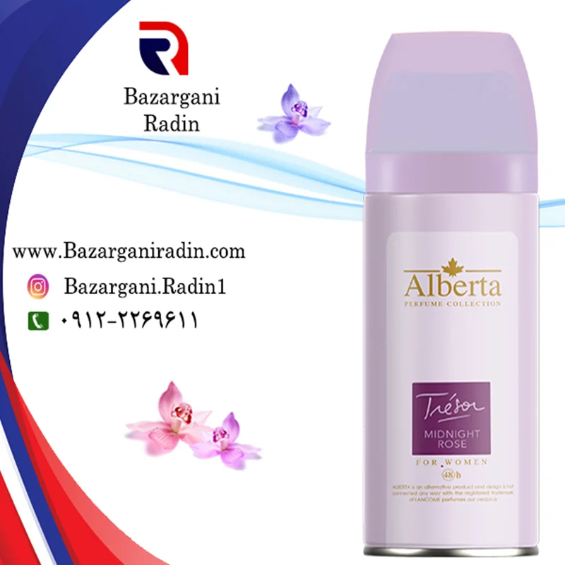 - اسپری خوشبو کننده بدن آلبرتا(ALBERTA) 150 میل زنانه با رایحهTresor MIDNIGHT ROSE- LANCOME
