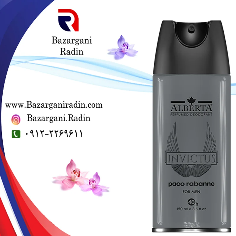 - اسپری خوشبو کننده بدن آلبرتا(ALBERTA) 150 میل مردانه با رایحه Invictus-paco rabanne