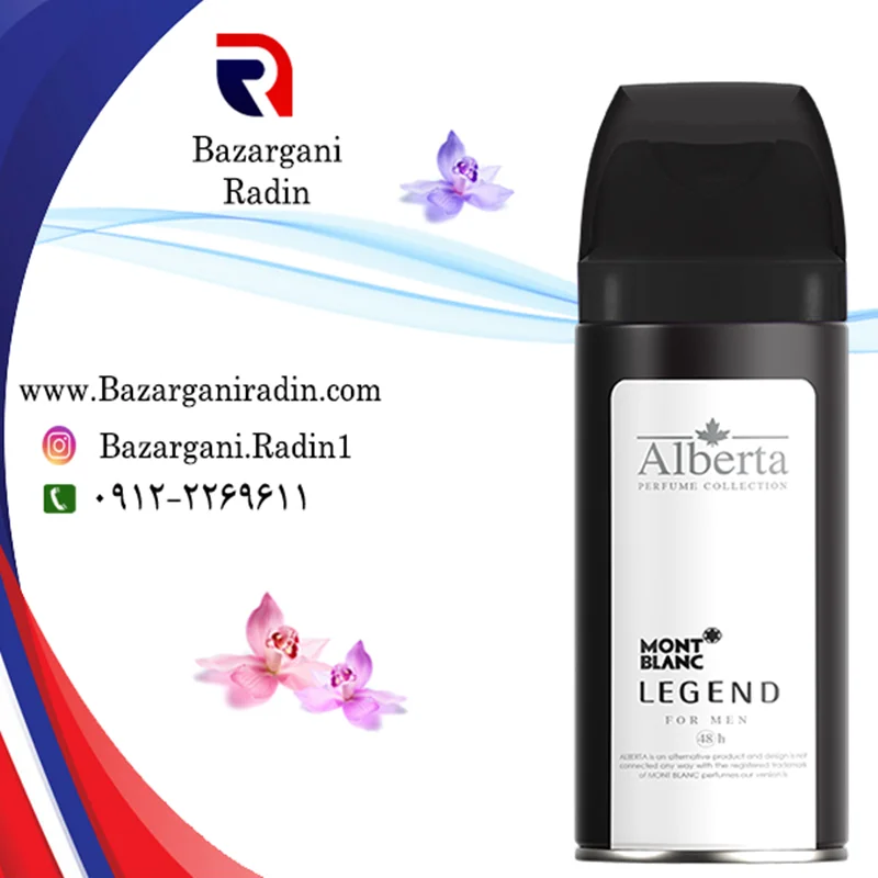 - اسپری خوشبو کننده بدن آلبرتا(ALBERTA) 150 میل مردانه با رایحه Mont Blanc Legend-MONT BLANC