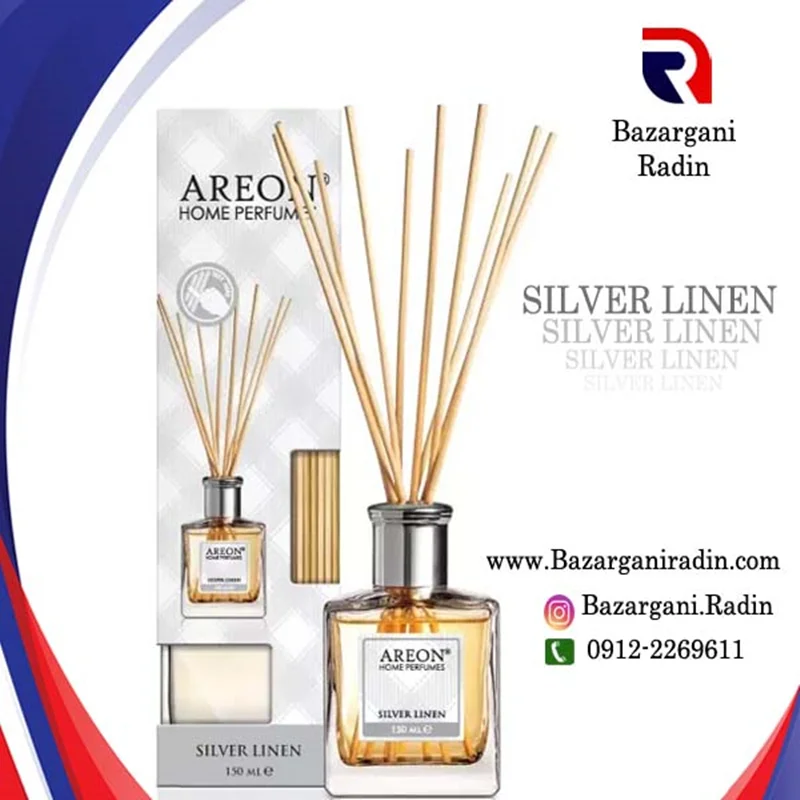 - این پک اسانس خوشبو کننده منزل و محیط کار آرئون 150 میل ، رایحه آن سیلور لاین است و یکی از برندهای محبوب خوشبو کننده چوبی در ایران می باشد.